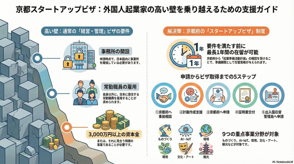 それが、外国人起業家が日本で会社を設立し、経営を続けるために必要な「経営・管理」ビザ(在留資格)の取得要件。